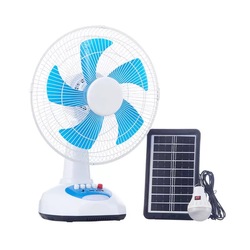 Ventilador de bombilla LED recargable solar de 12 pulgadas al por mayor de fábrica con batería para uso en oficina 2 paneles solares incluidos